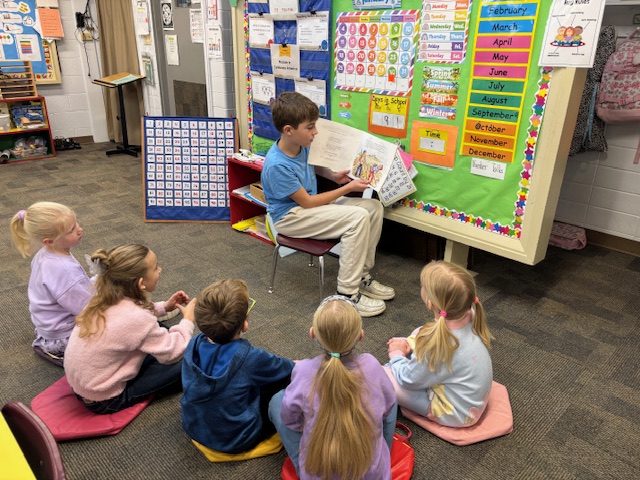 The students were so excited when Brantley Blazek came to read them a funny story about how the pigs escaped from the farmer and his wife. Brantley used his PBIS behavior tickets to "buy" the privilege to read to another class. He quickly chose our class as his sister is one of our classmates. He did a fabulous job of engaging them by changing his voice throughout the book. Thank you, Brantley, for coming to read to us!