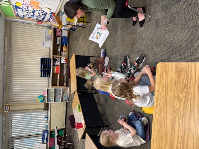 The children finally earned the privilege of having Mrs. Eberhardt come to read a book to them while they enjoyed a fruit cup! The interesting part is that the students chose to eat fruit instead of sweets! She read a biography about Martin Luther King, Jr. They behaved extremely well while their special visitor was here. Great job, students!!